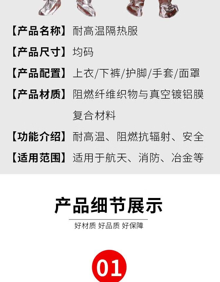 鸣固 隔热服1000度防火阻燃耐高温工作服防烫服防护服防火服 CW666304