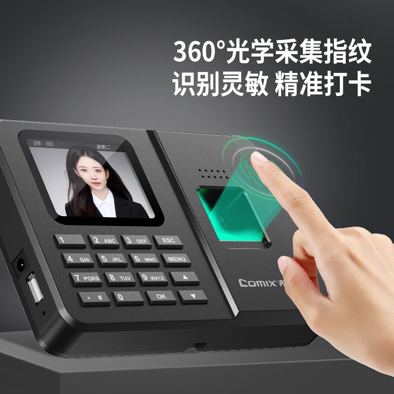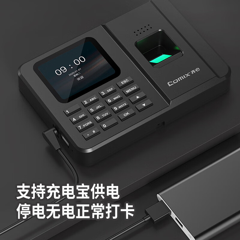 齐心(COMIX)考勤机 指纹打卡机京东自营 员工考勤指纹打卡 免网络免软件 支持充电宝供电 一键导出报表 F33113