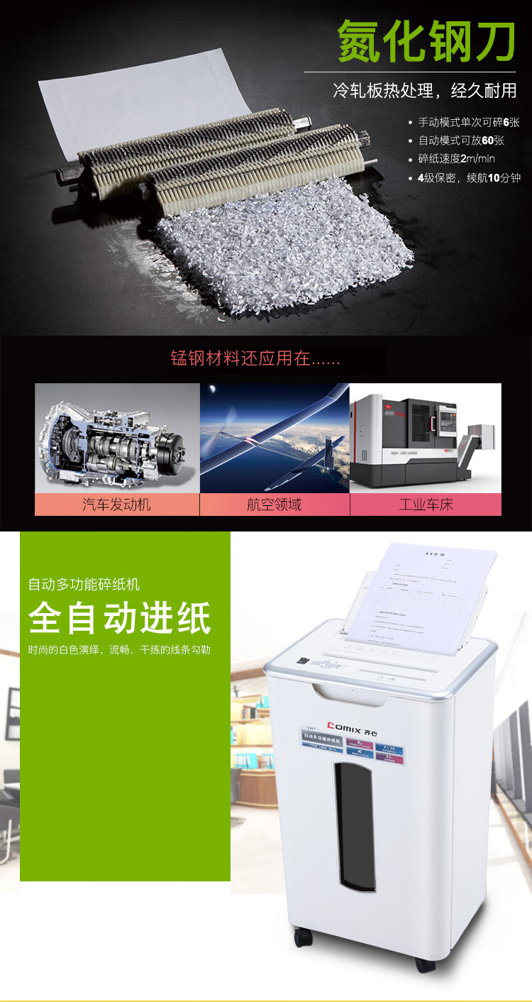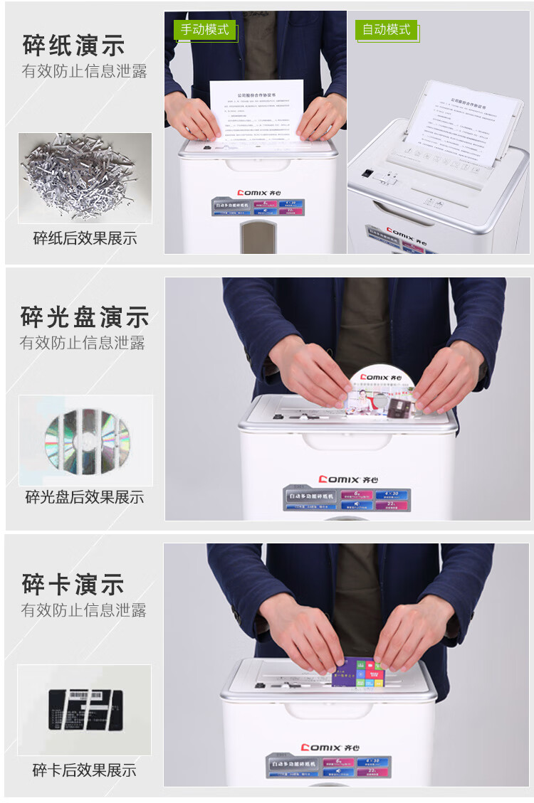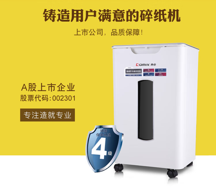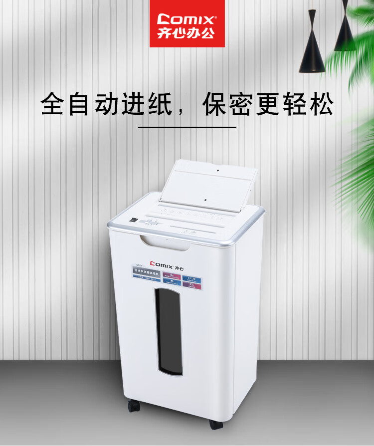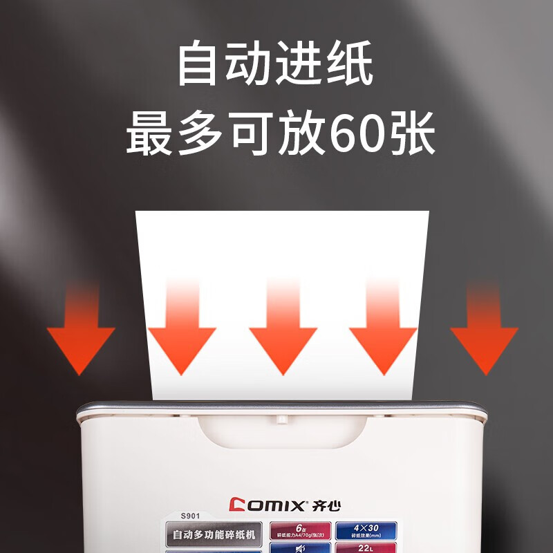 齐心(COMIX)4级保密办公商用粉碎碎纸机(全自动60张 手动单次6张 三入口 连续碎10分钟 22L可碎卡光盘)S901