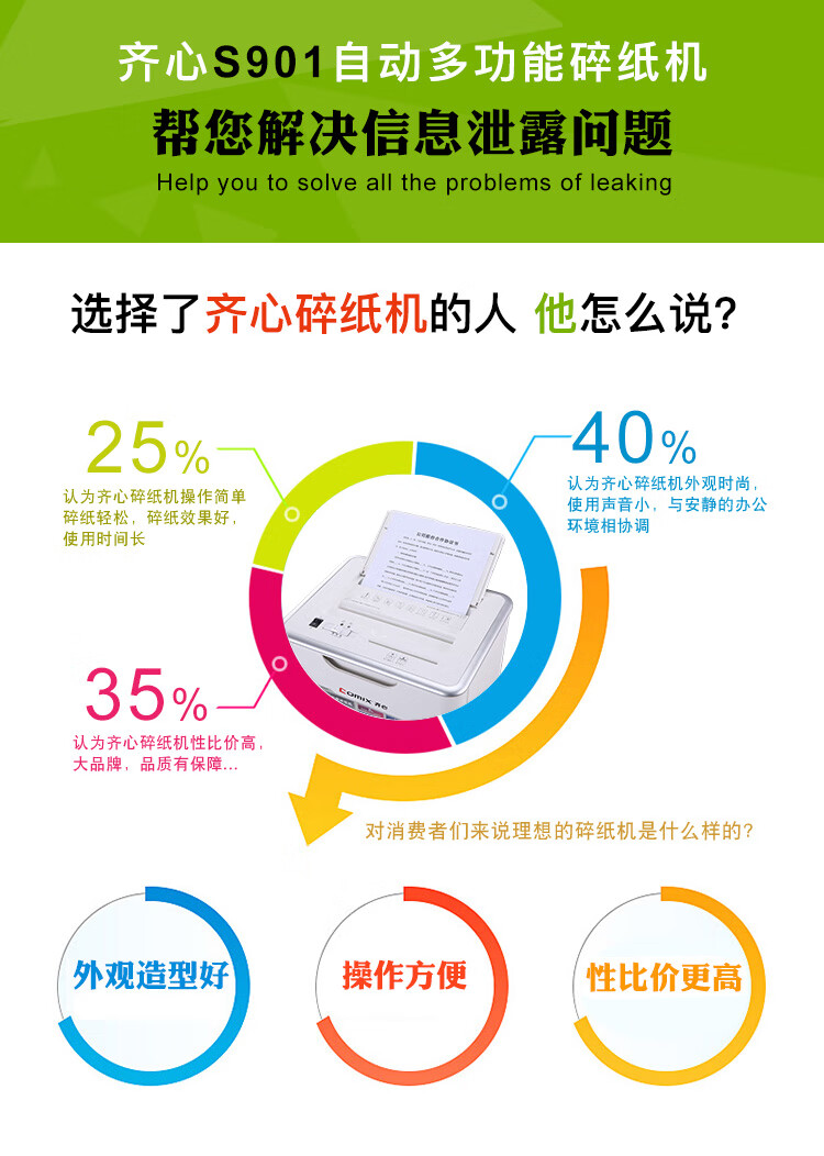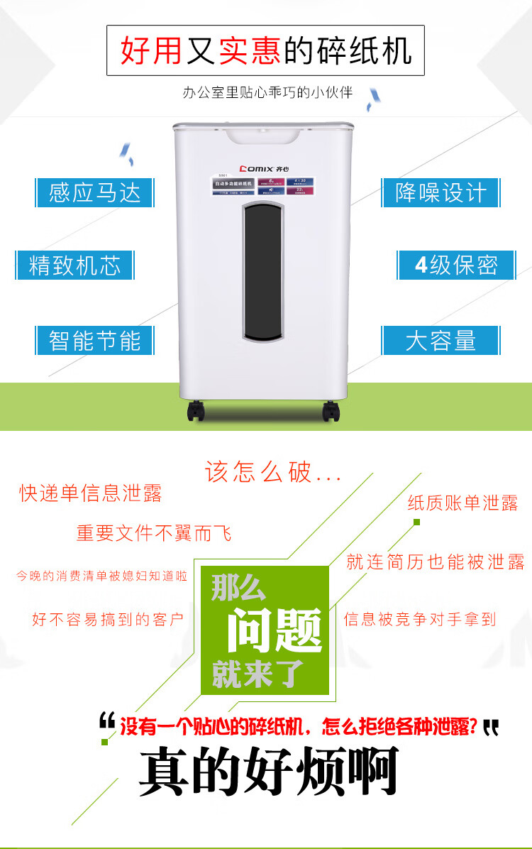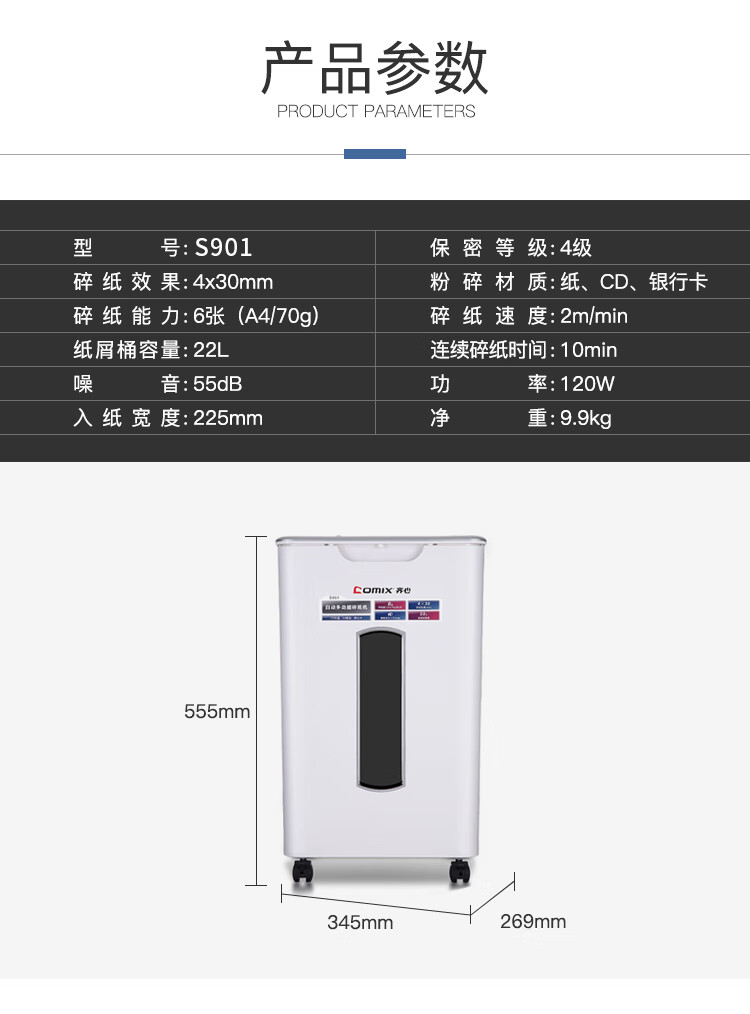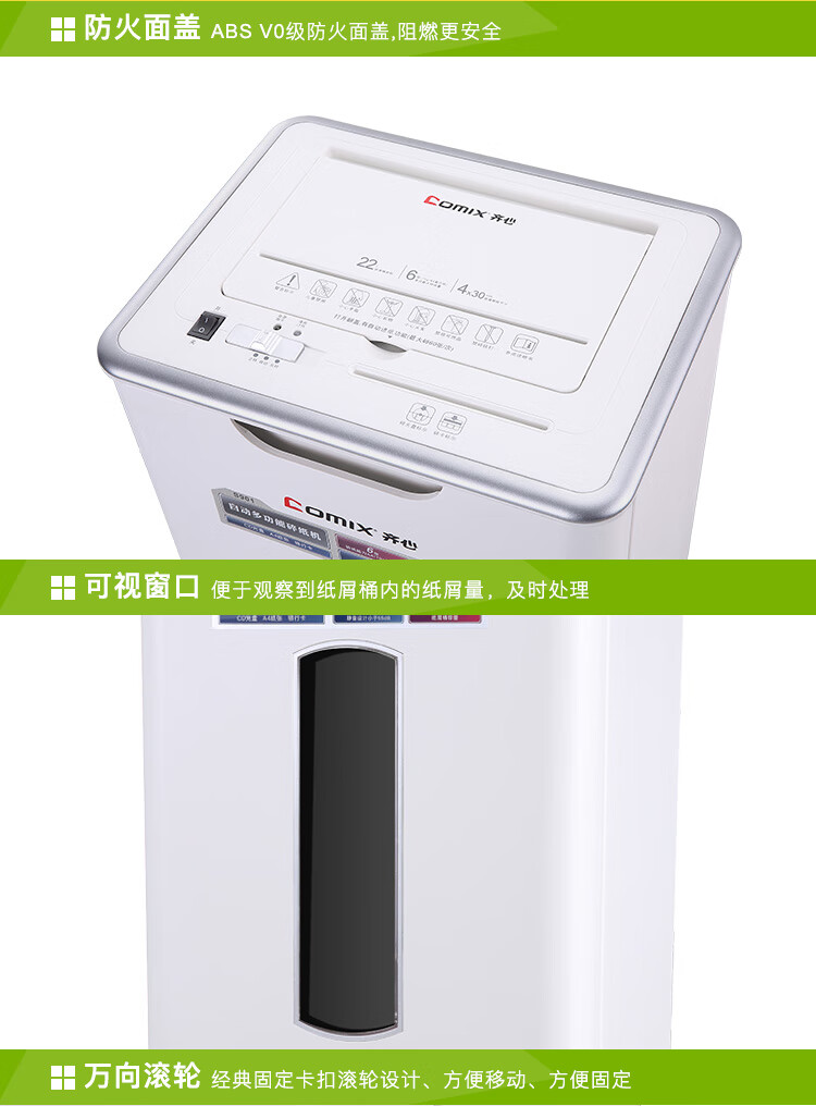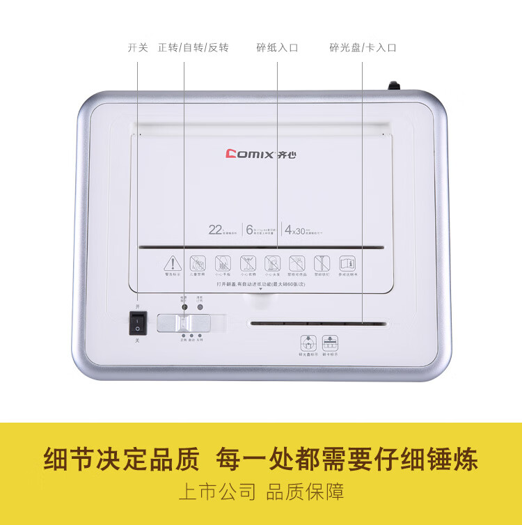 齐心(COMIX)4级保密办公商用粉碎碎纸机(全自动60张 手动单次6张 三入口 连续碎10分钟 22L可碎卡光盘)S901