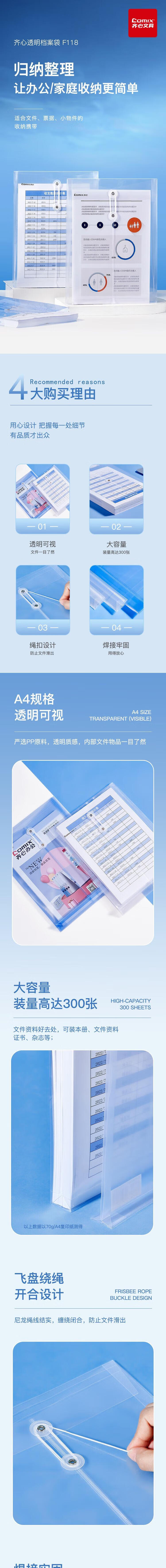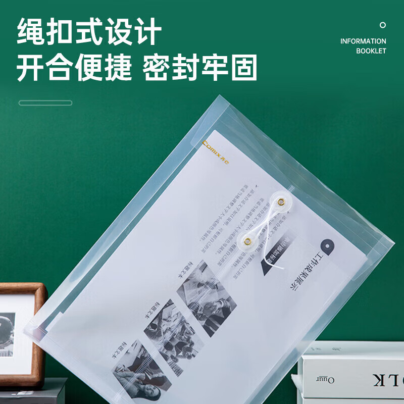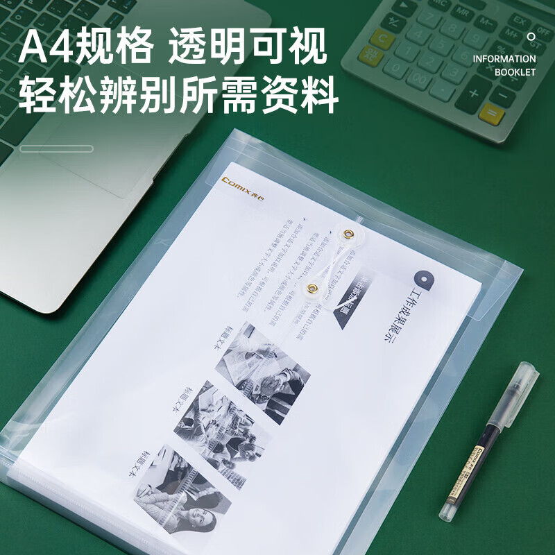齐心(COMIX) A4透明绕绳档案袋文件袋资料袋竖式白色F118 10个装 可定制