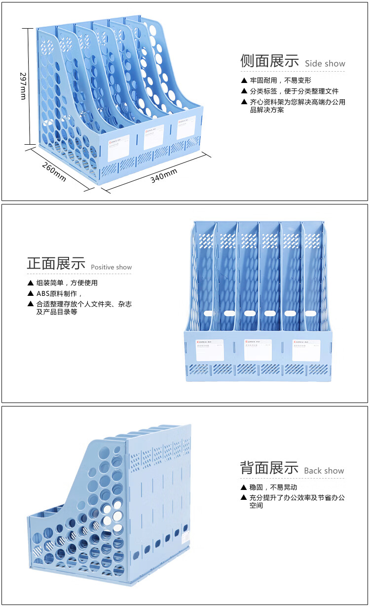 齐心(COMIX)稳固型六联耐用文件架文件框资料架文件收纳栏蓝色1个B2176可定制