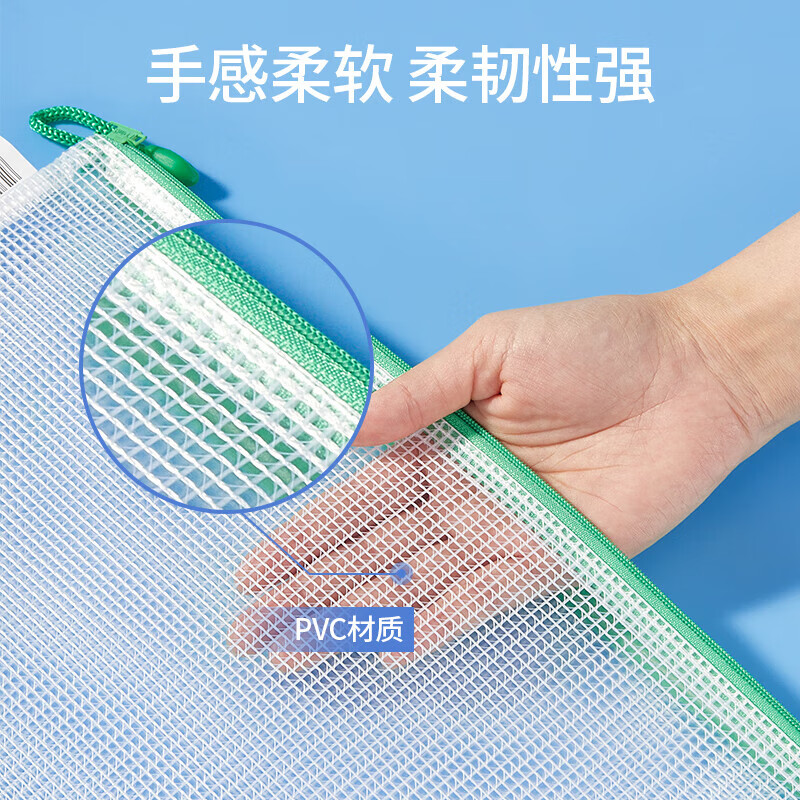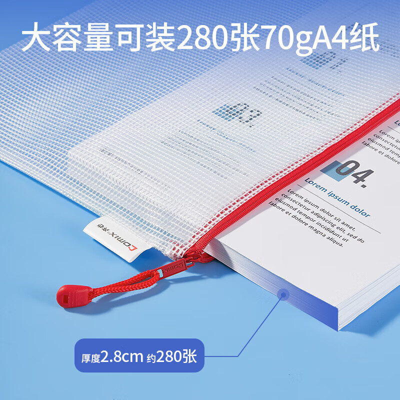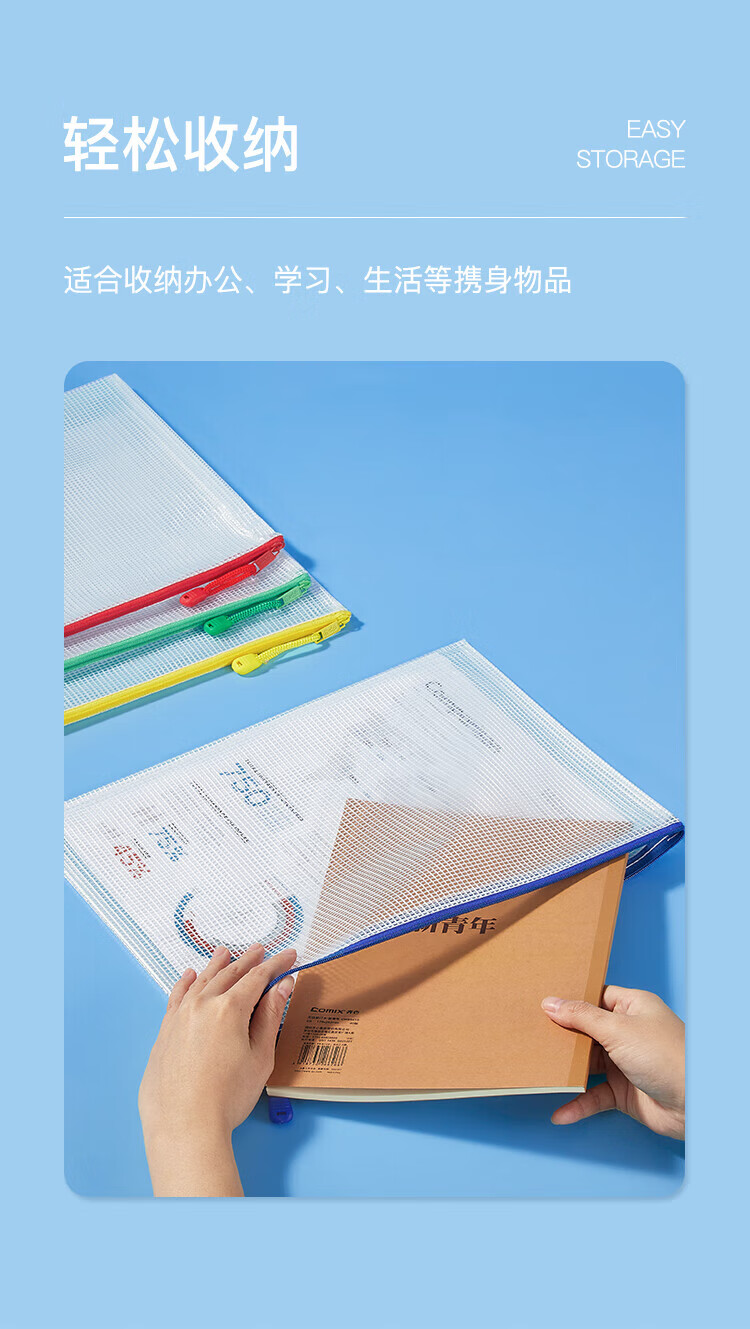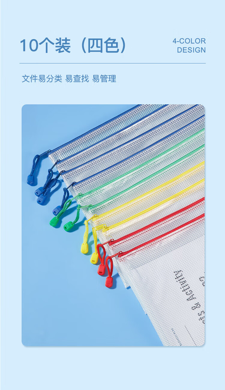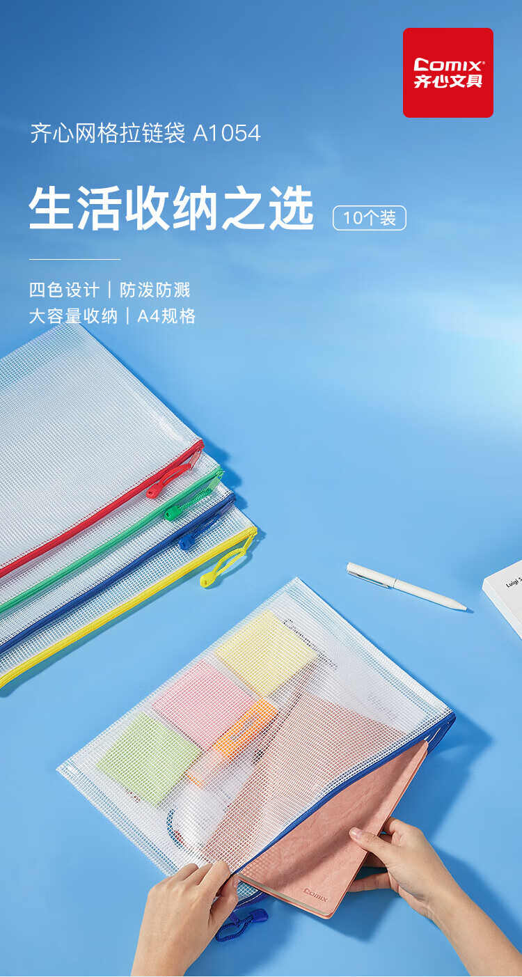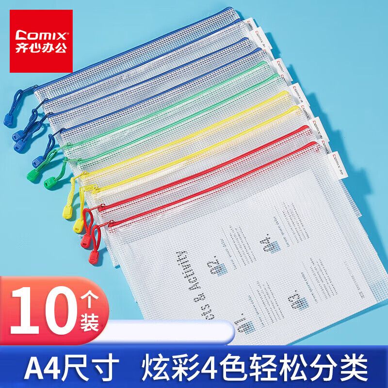 齐心(COMIX)网格拉链袋科目分类收纳专用袋A4(10个装)A1054可定制