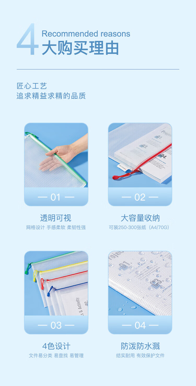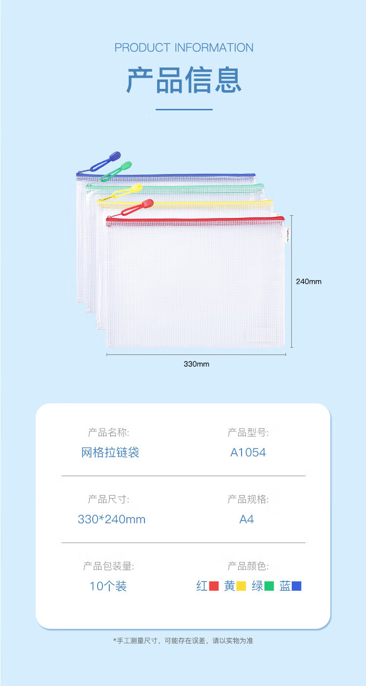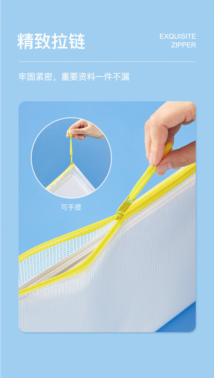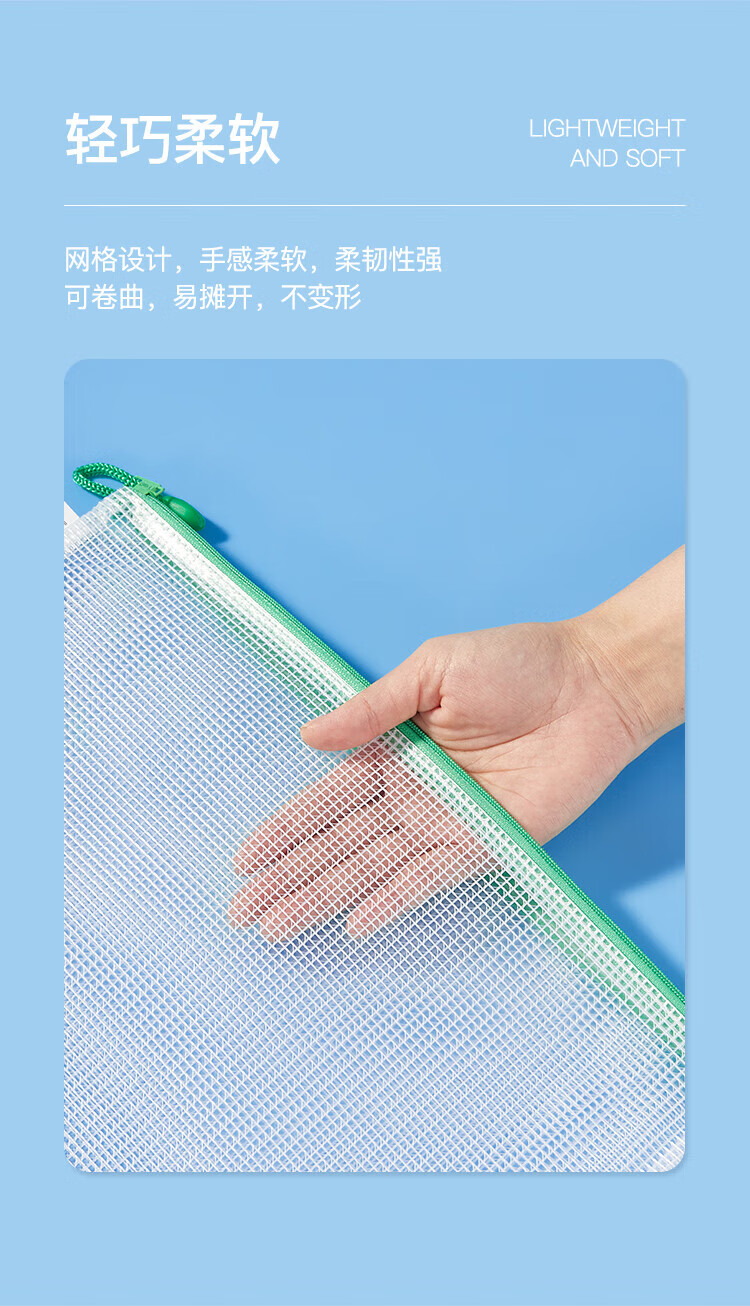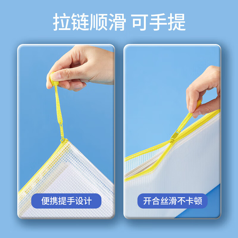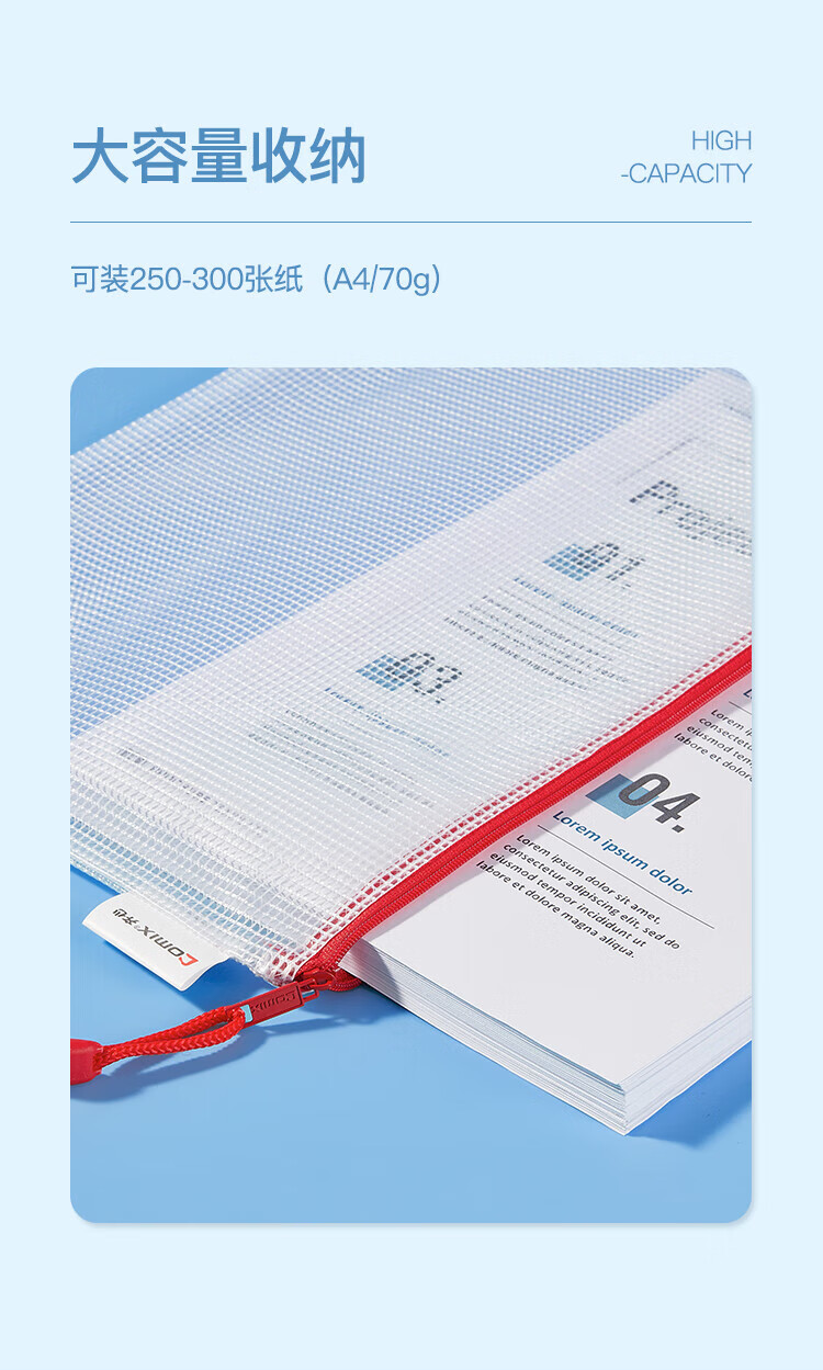齐心(COMIX)网格拉链袋科目分类收纳专用袋A4(10个装)A1054可定制