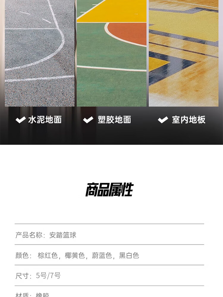 安踏(ANTA)篮球7号CUBAL比赛成人儿童青少年中考室内外训练标准七号PU101-1