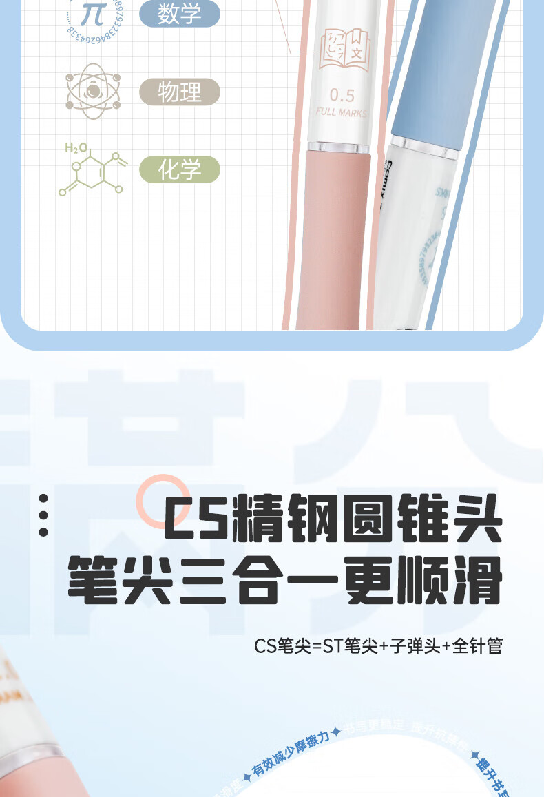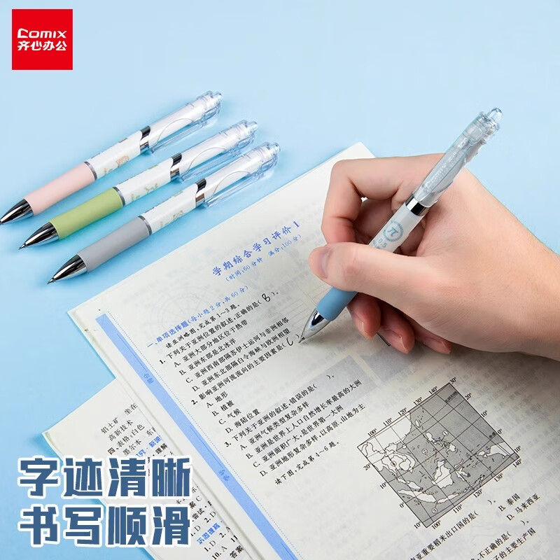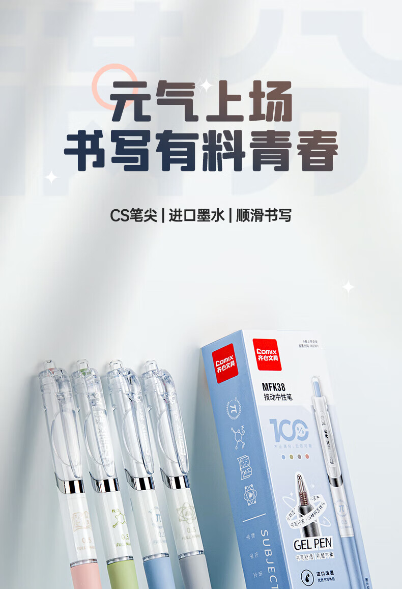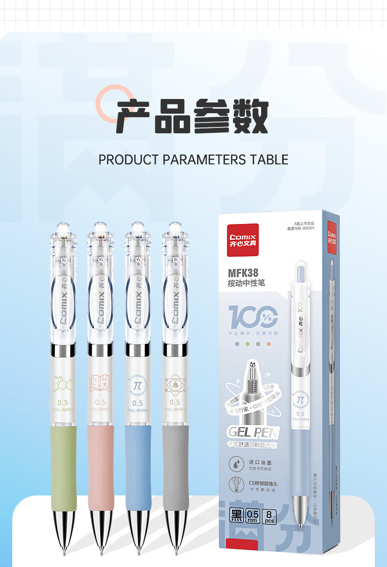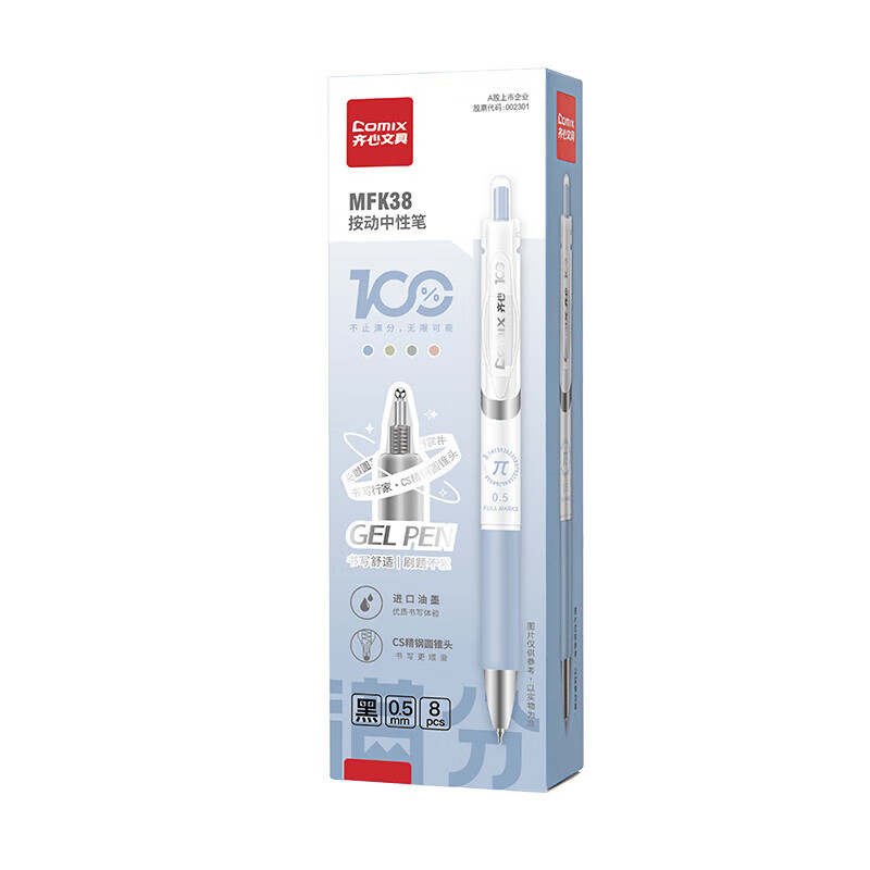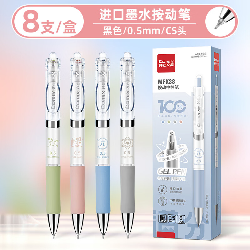 齐心(COMIX)刷题笔CS笔尖按动黑色0.5mm中性笔速干顺滑学生考试专用笔MFK38 【CS笔尖】进口墨水 8支/盒