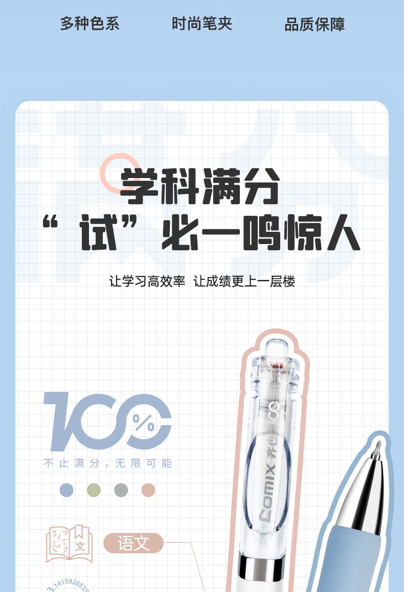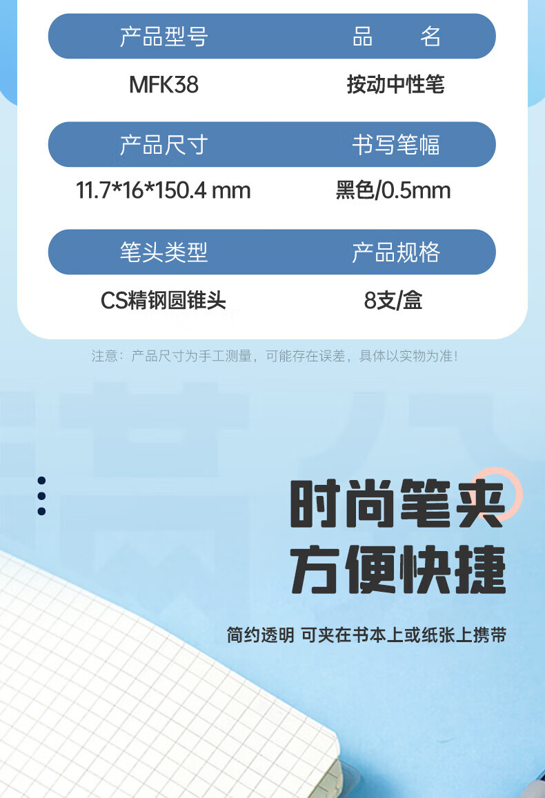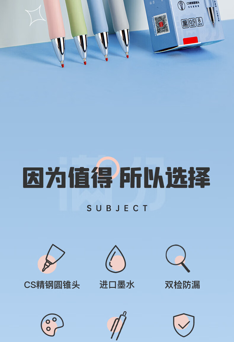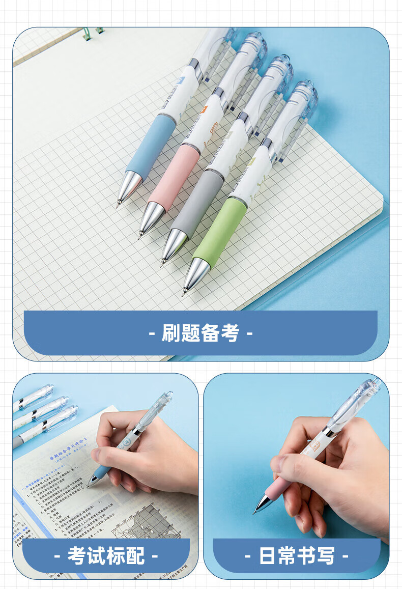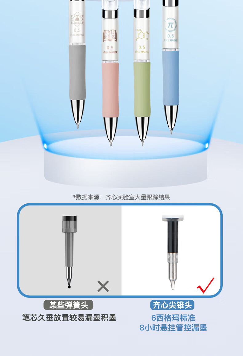 齐心(COMIX)刷题笔CS笔尖按动黑色0.5mm中性笔速干顺滑学生考试专用笔MFK38 【CS笔尖】进口墨水 8支/盒