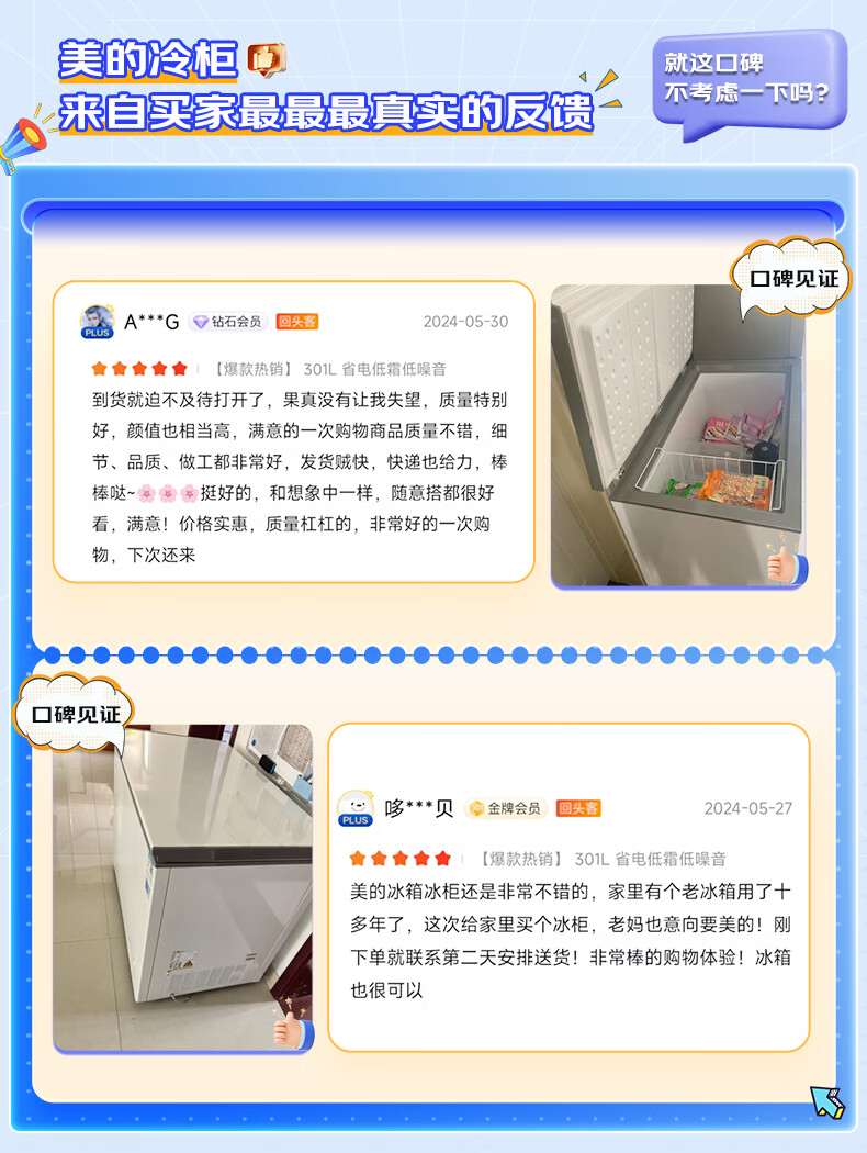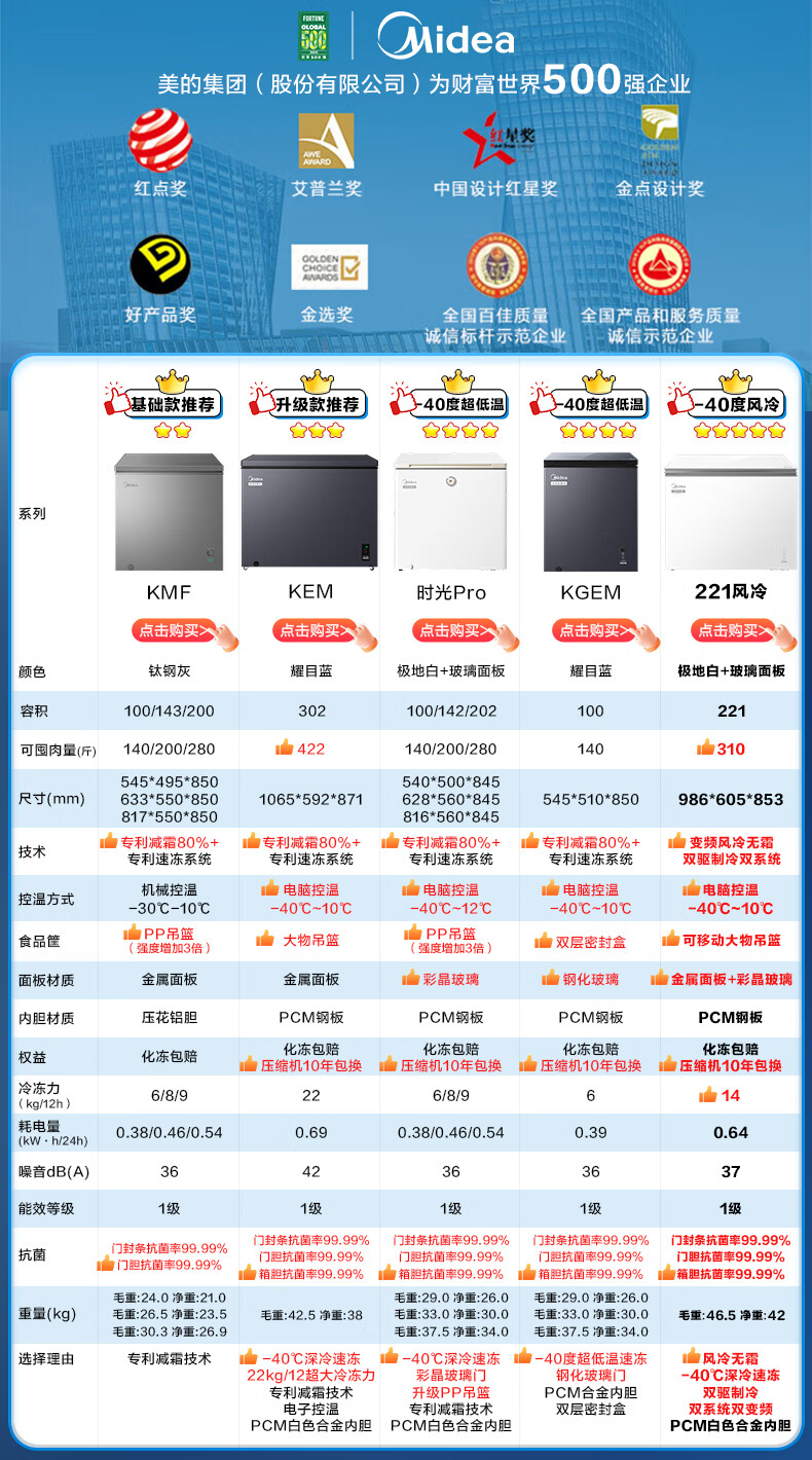 美的(Midea)301升家用卧式大冷冻囤货冰柜 大容量冷藏冷冻转换冷柜 卧式冰箱 BD/BC-301KM(E)国家补贴