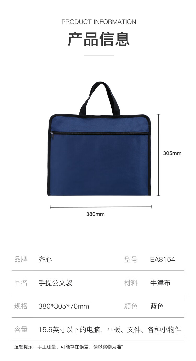 齐心(COMIX)办公公文包 商务男女职业文件袋事务包/文件包 手提袋资料袋便携 B5蓝 EA8154