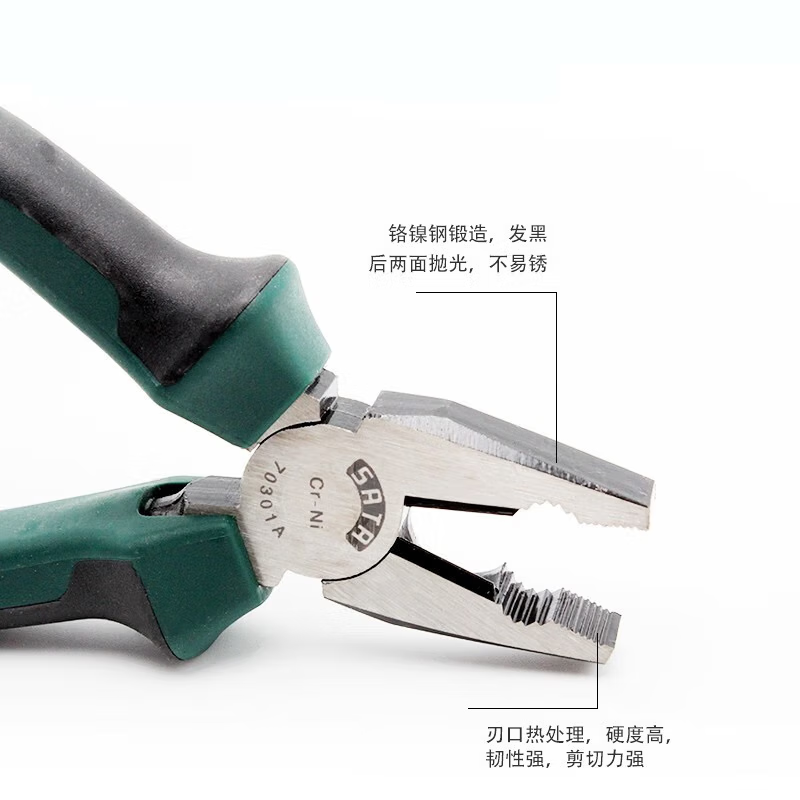 世达(SATA)工具钳子斜口钳斜嘴钳偏口钳8"钢丝钳老虎钳尖嘴钳70303A