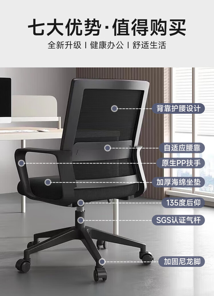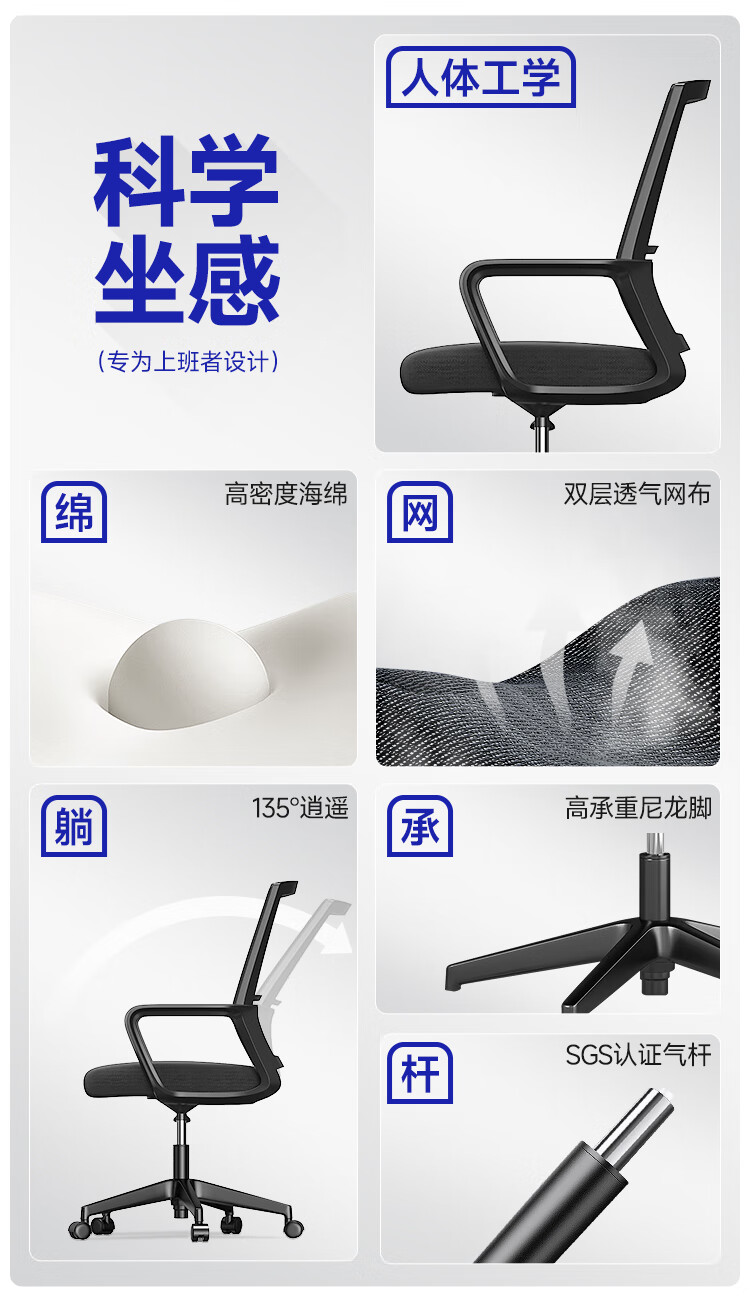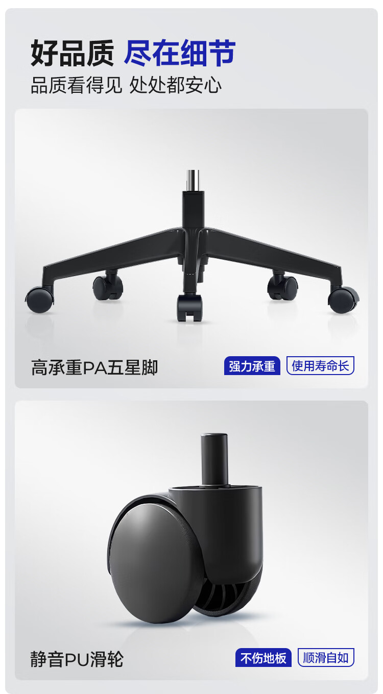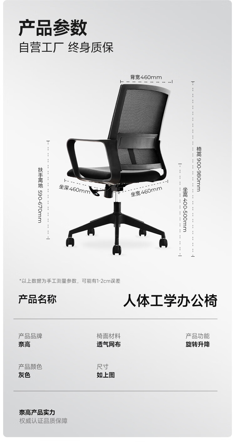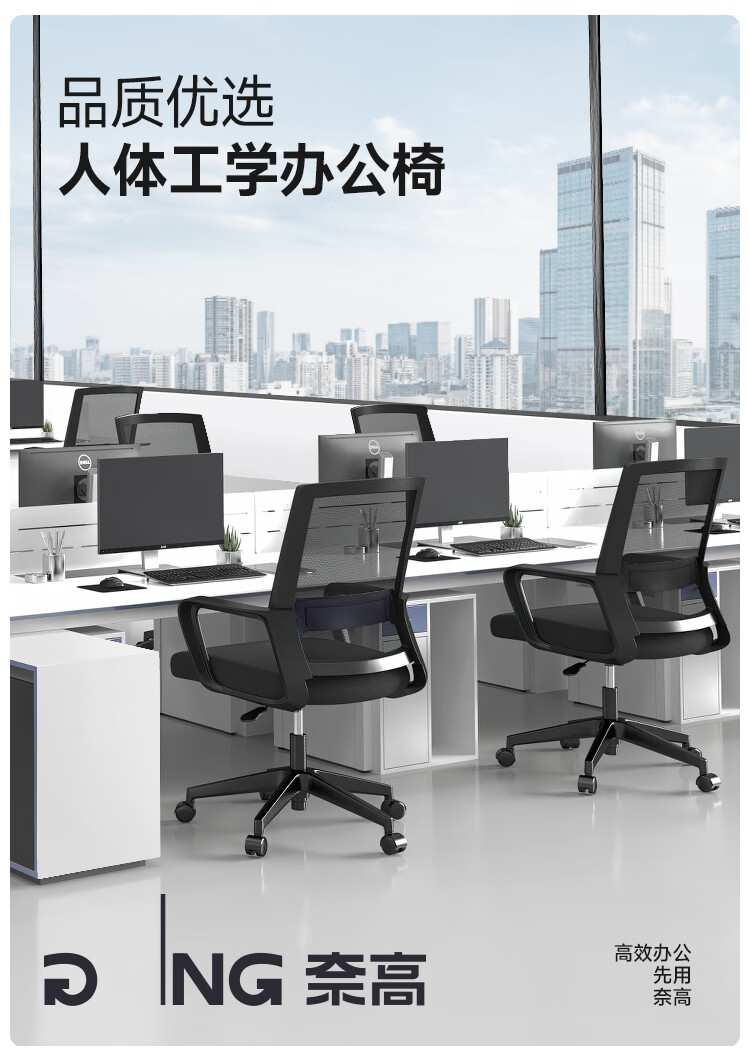 奈高(NAIGAO)电脑椅转椅家用人体工学椅子办公椅学习书房电竞游戏椅子黑框黑网