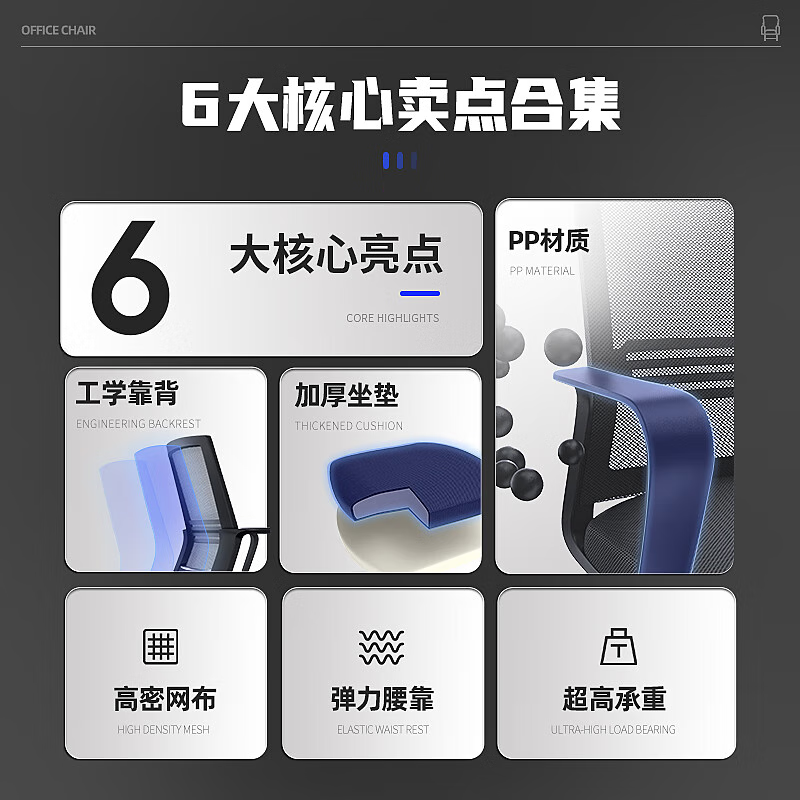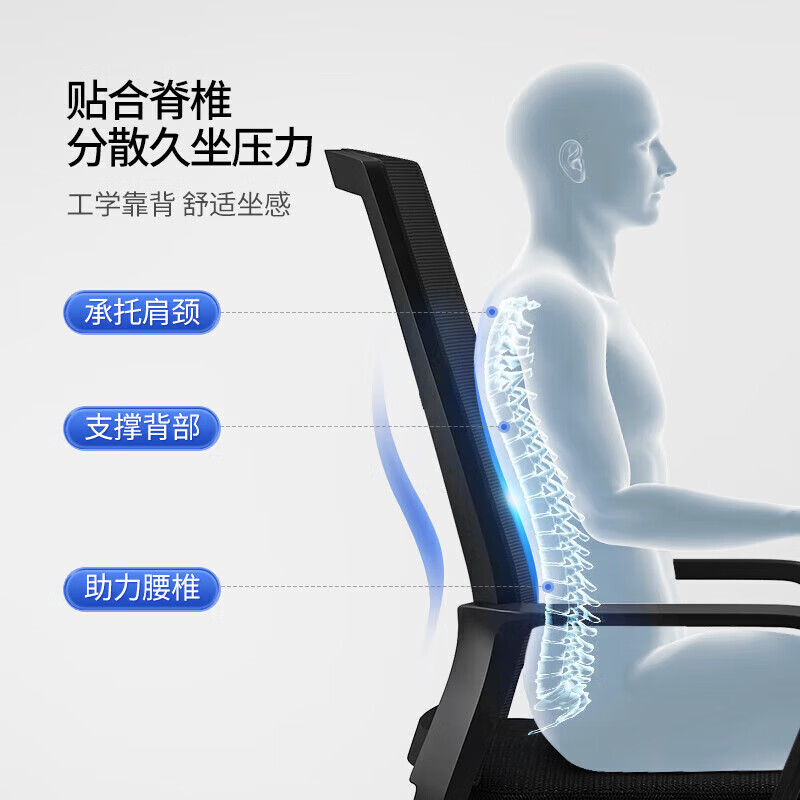 奈高(NAIGAO)电脑椅转椅家用人体工学椅子办公椅学习书房电竞游戏椅子黑框黑网