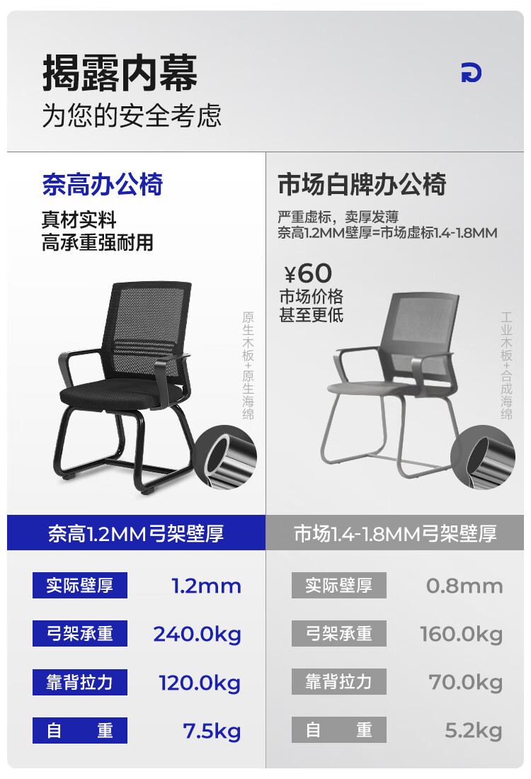奈高(NAIGAO)椅子电脑椅办公椅会议椅商业办公椅座椅人体工学椅网布弓形椅